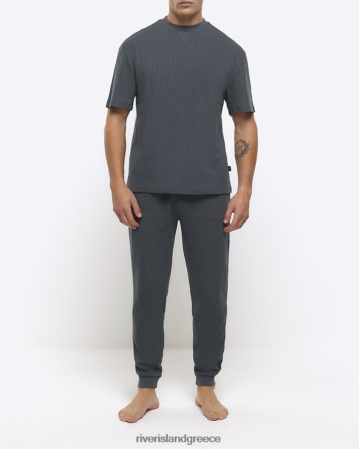 River Island ενδύματα μπλε άνδρες κανονική εφαρμογή waffle lounge t-shirt B6N8X5466