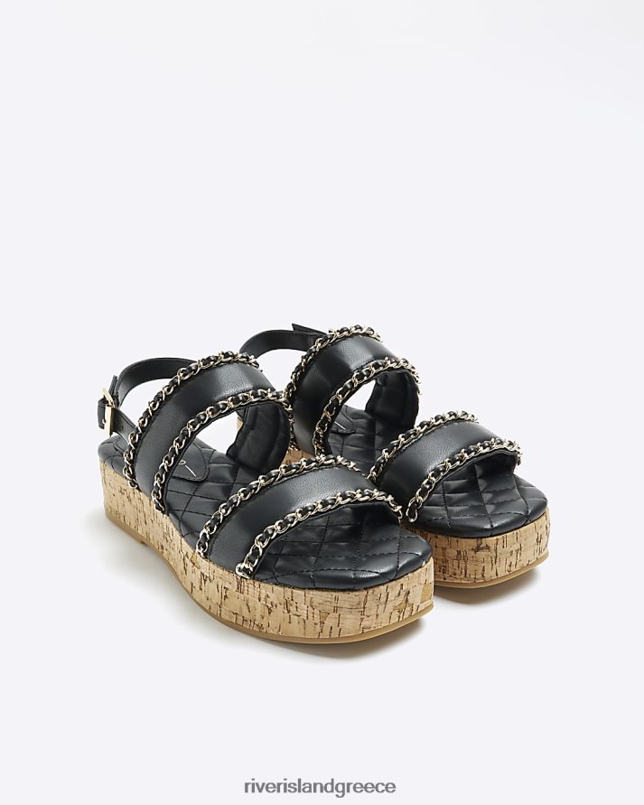 River Island είδη υπόδησης μαύρος γυναίκες Λεπτομέρεια αλυσίδας flatform σανδάλια B6N8X4748
