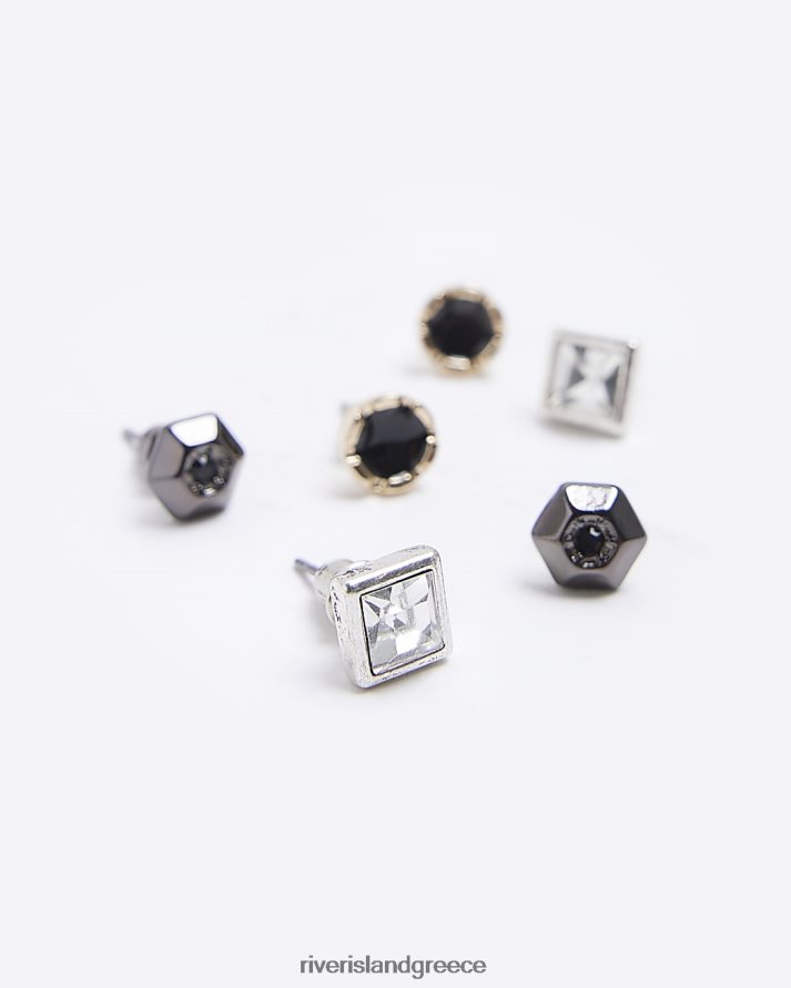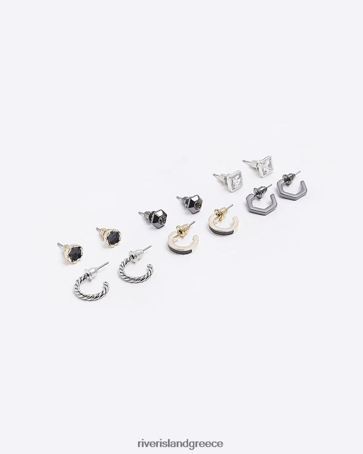 River Island αξεσουάρ μαύρος άνδρες πολυσυσκευασία με 6 σκουλαρίκια με καρφιά και κρίκους B6N8X5902
