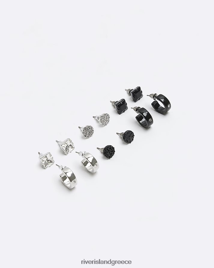 River Island αξεσουάρ μαύρος άνδρες σκουλαρίκια με καρφιά και κρίκοι πολυσυσκευασία B6N8X5705