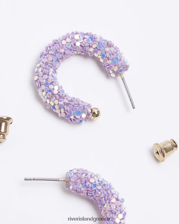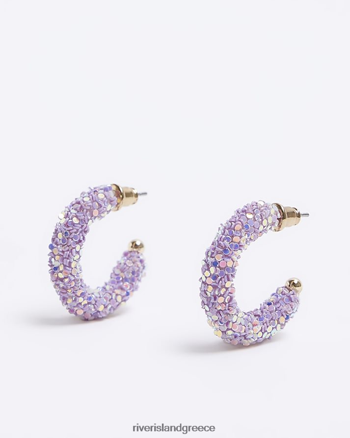 River Island αξεσουάρ μωβ κορίτσια glitter σκουλαρίκια κρίκοι B6N8X6418
