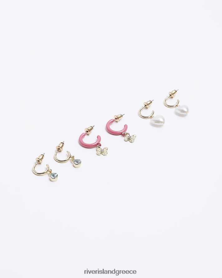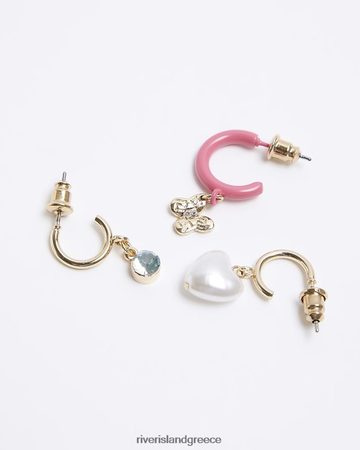 River Island αξεσουάρ χρυσός κορίτσια χρωματιστά σκουλαρίκια κρίκοι καρδιά 3 συσκευασίες B6N8X6416