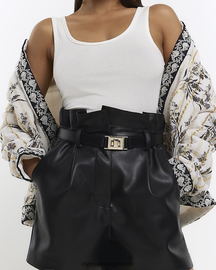 River Island ενδύματα μαύρος γυναίκες Σορτς χαρτοσακούλα με ζώνη από ψεύτικο δέρμα B6N8X3795