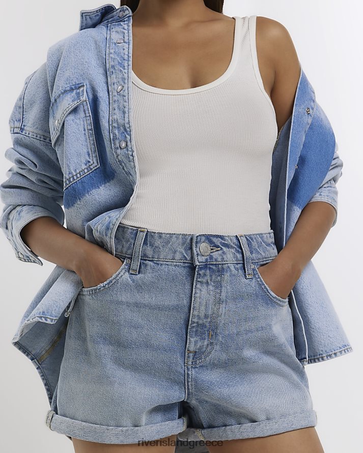 River Island ενδύματα μπλε γυναίκες ψηλόμεσο μαμά τζιν σορτς B6N8X4566