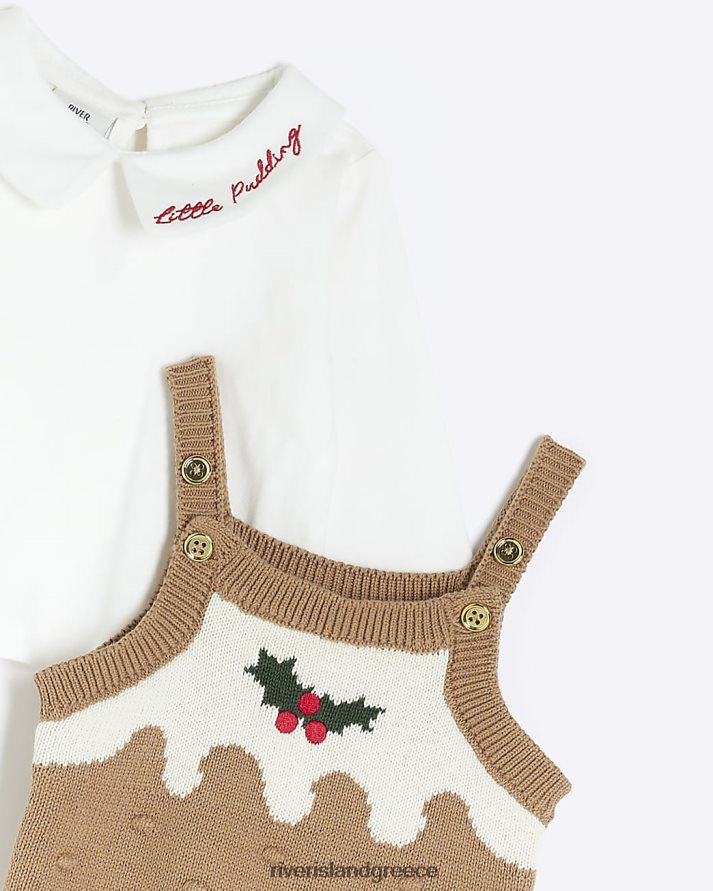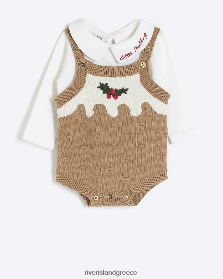 River Island ενδύματα μπεζ κορίτσια bb σετ χριστουγεννιάτικη πουτίγκα romper B6N8X6586