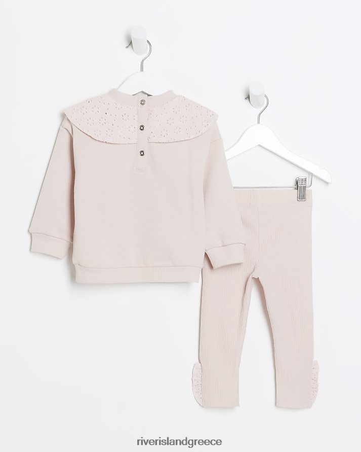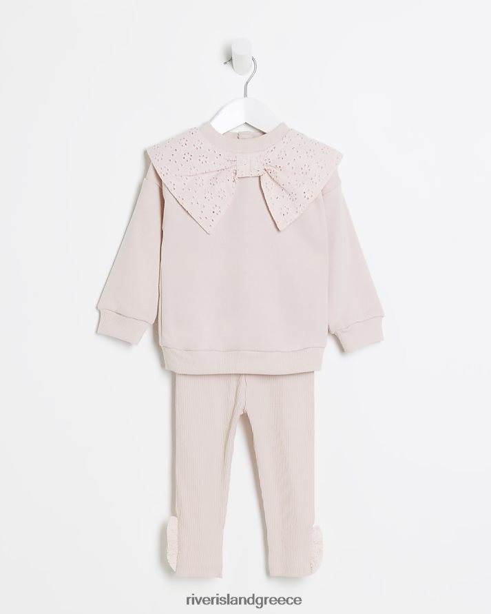 River Island ενδύματα ροζ κορίτσια Mg broderie φιόγκο ιδρώτα στολή B6N8X6651