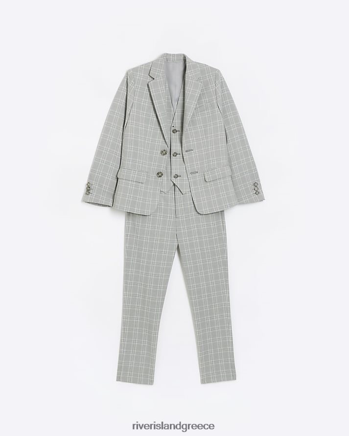 River Island ενδύματα γκρί αγόρια b check προσαρμοσμένο σετ κοστουμιών 3 τεμαχίων B6N8X6896
