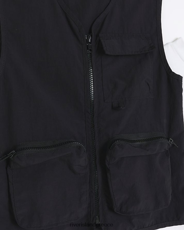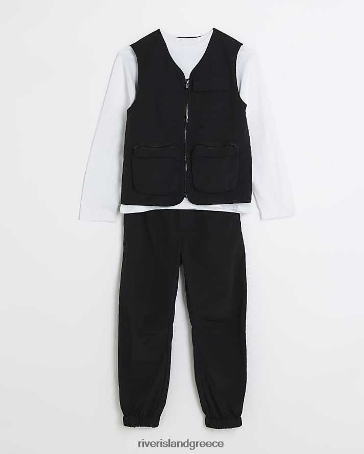 River Island ενδύματα μαύρος αγόρια Σετ παντελόνι από νάιλον gilet cargo B6N8X6776