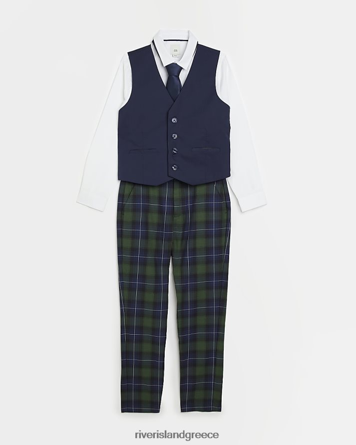 River Island ενδύματα πράσινος αγόρια β σετ κοστουμιών ταρτάν B6N8X6770