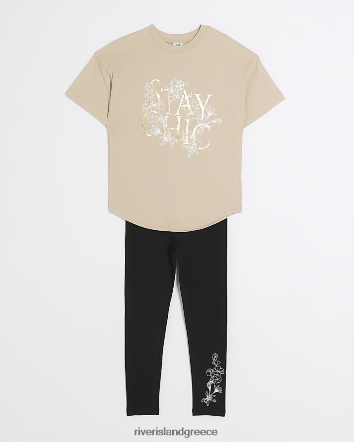 River Island ενδύματα καφέ κορίτσια g γραφικό σετ μπλουζάκι και κολάν B6N8X6078