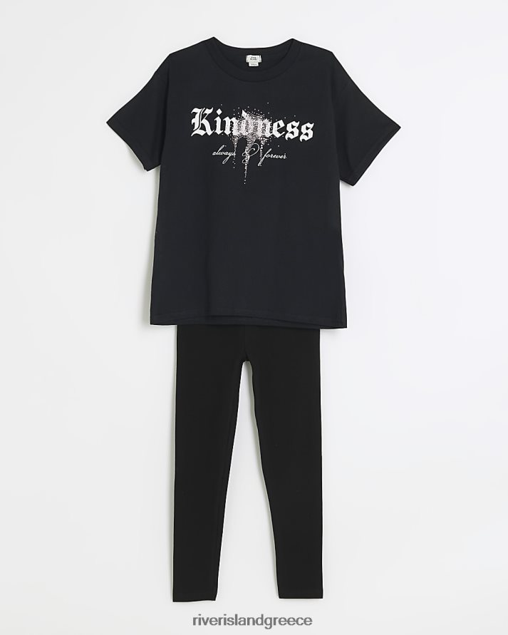River Island ενδύματα μαύρος κορίτσια g kindness t-shirt και κολάν σετ B6N8X6136