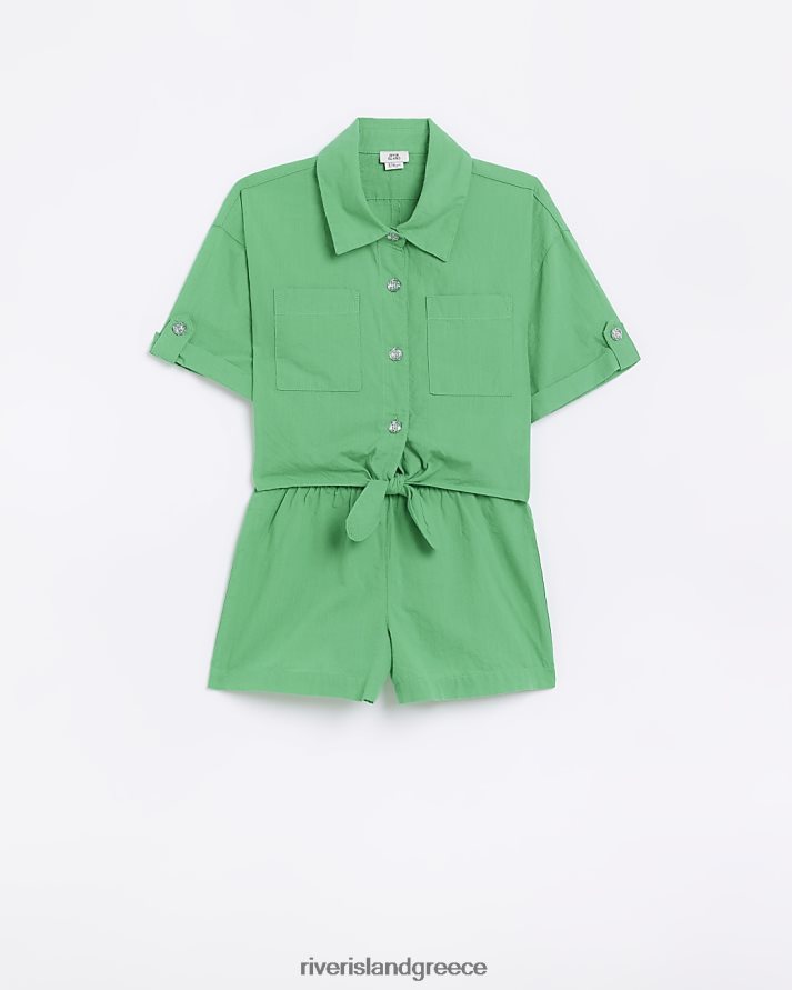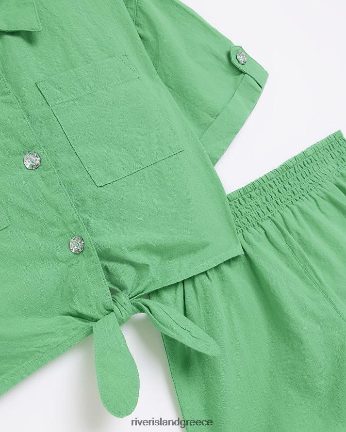 River Island ενδύματα πράσινος κορίτσια g γραβάτα μπροστά πουκάμισο και σορτς B6N8X6358