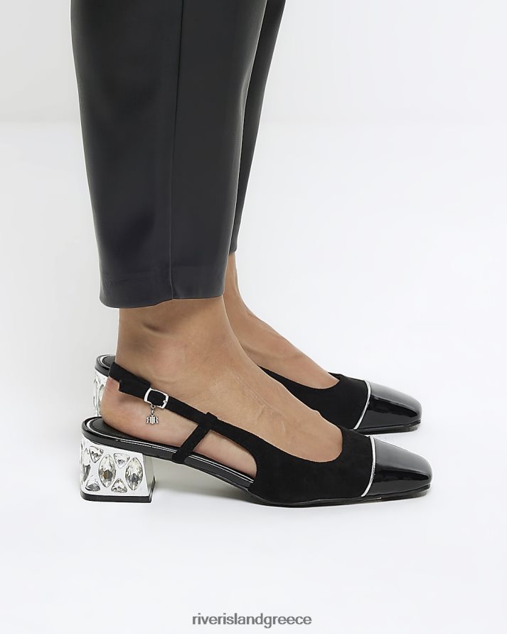 River Island είδη υπόδησης μαύρος γυναίκες κρυστάλλινα παπούτσια με σφεντόνα στην πλάτη B6N8X3864