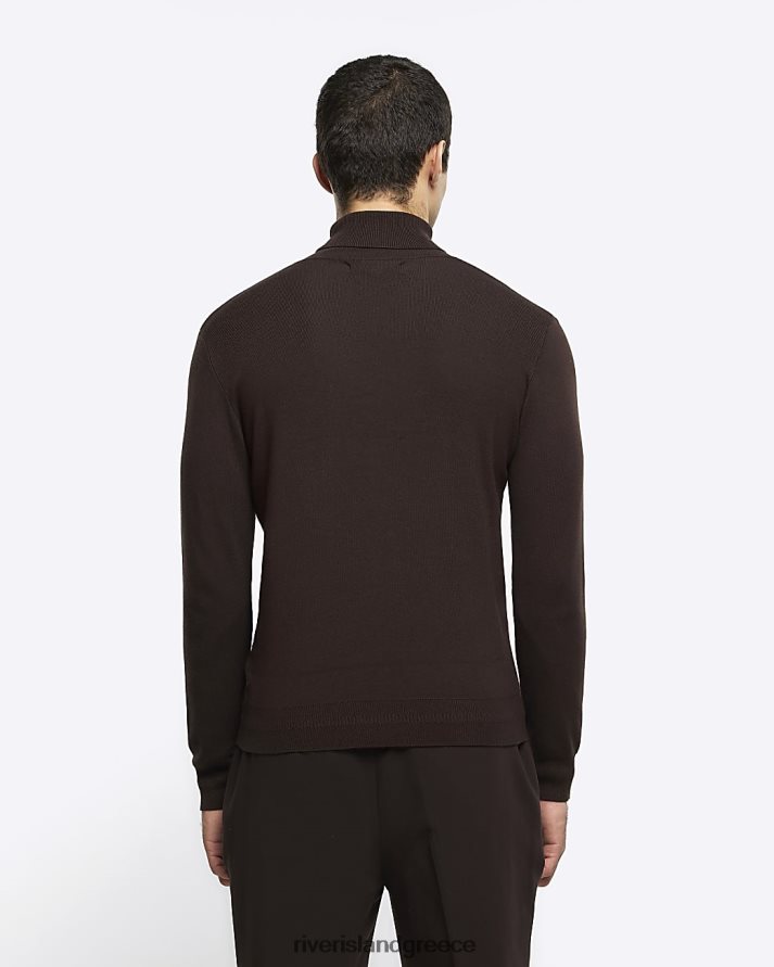 River Island ενδύματα καφέ άνδρες λεπτή εφαρμογή σε ρολό λαιμόκοψη B6N8X2602