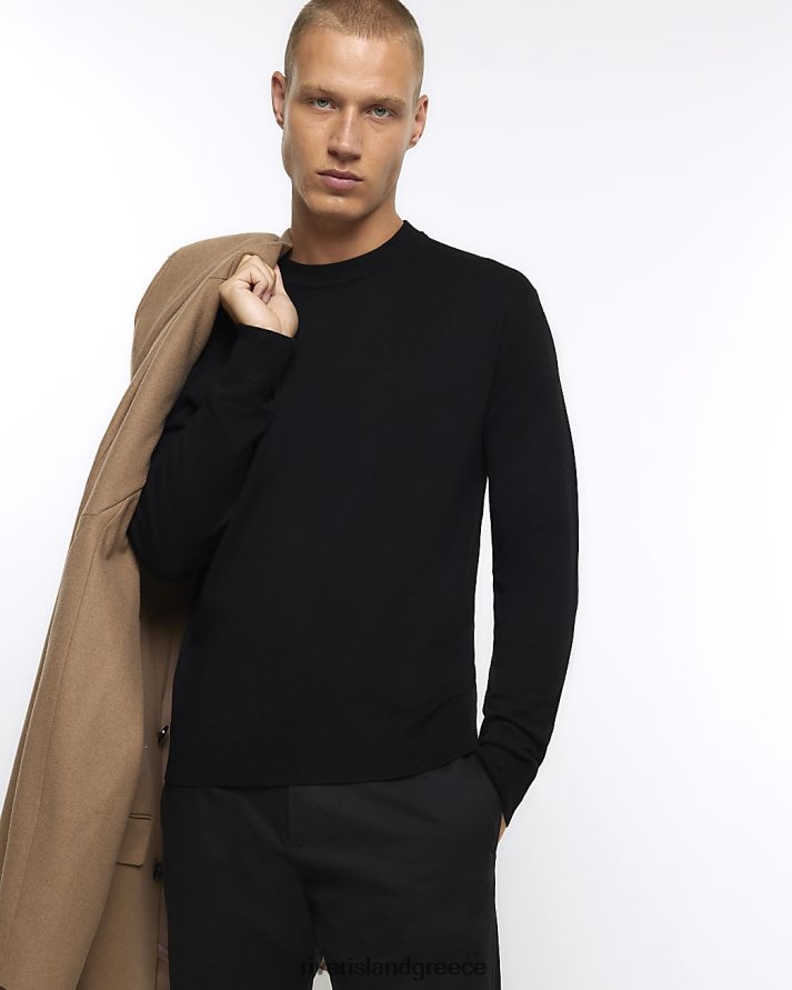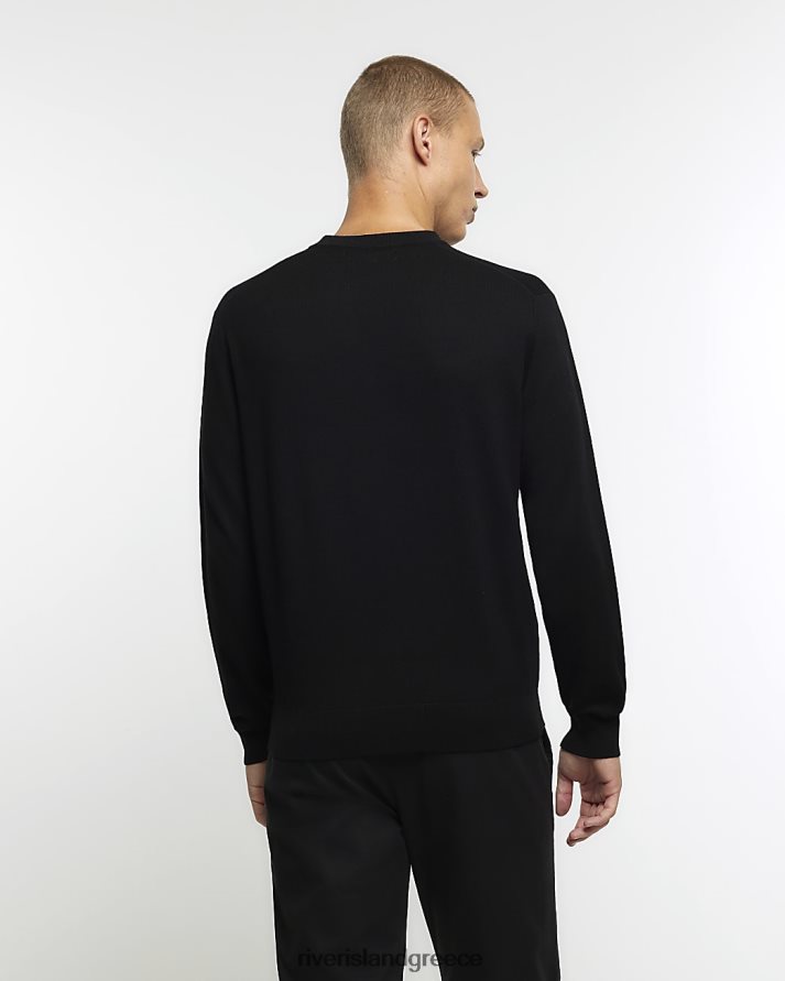 River Island ενδύματα μαύρος άνδρες βραχυκυκλωτήρα πληρώματος λεπτής εφαρμογής B6N8X2591