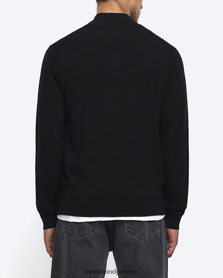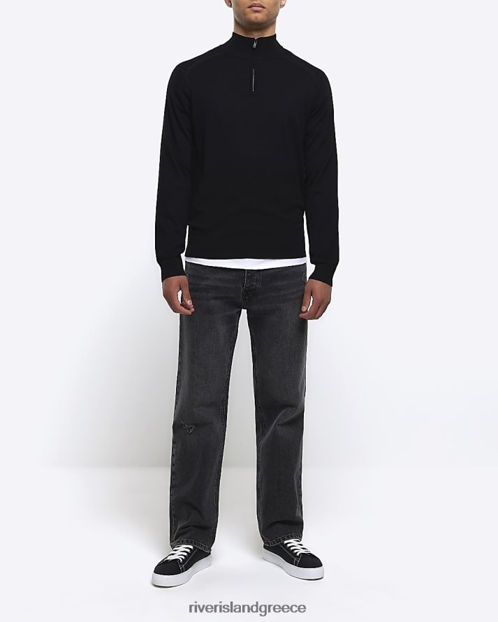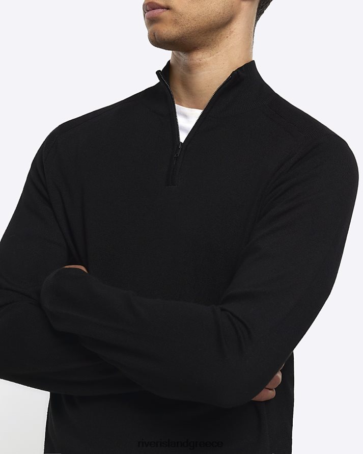 River Island ενδύματα μαύρος άνδρες slim fit πλεκτό τέταρτο φερμουάρ B6N8X2406