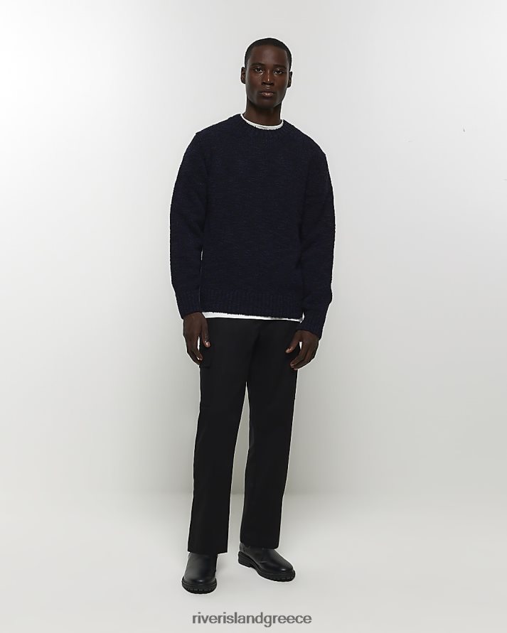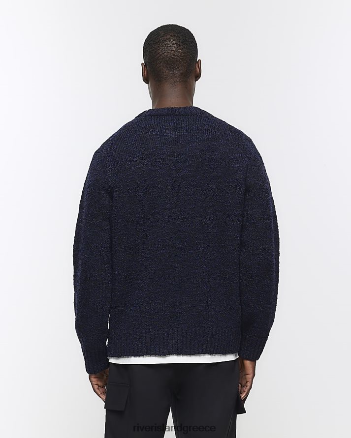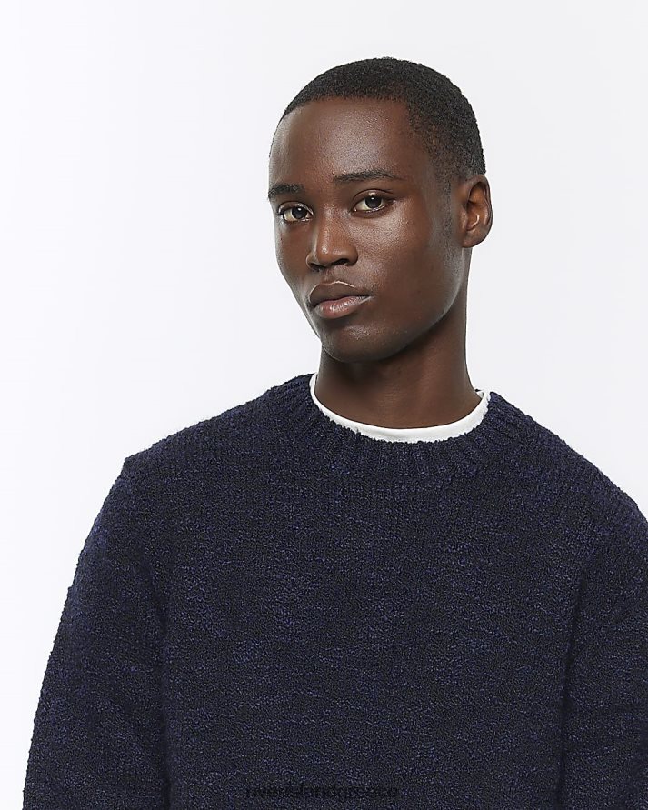 River Island ενδύματα ΠΟΛΕΜΙΚΟ ΝΑΥΤΙΚΟ άνδρες λεπτή εφαρμογή boucle jumper B6N8X5496