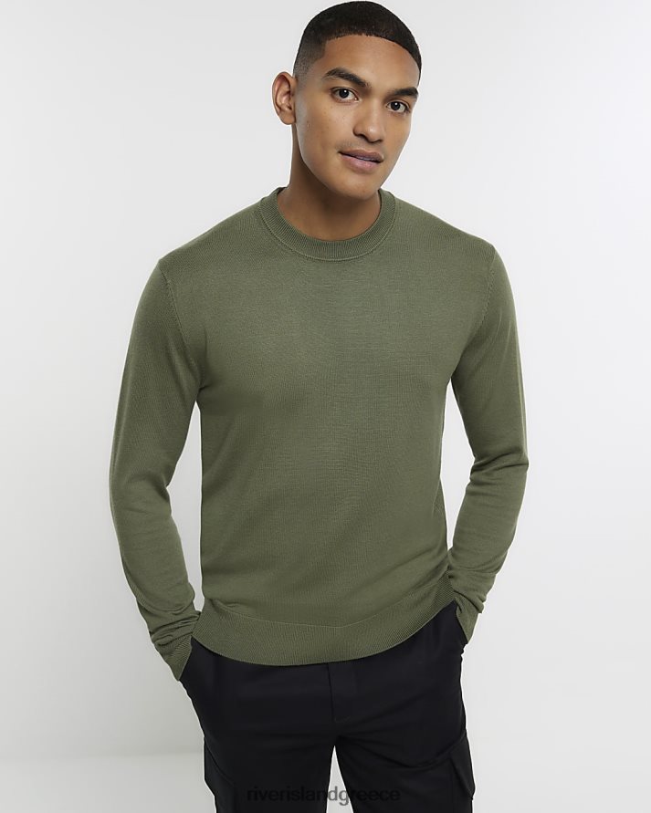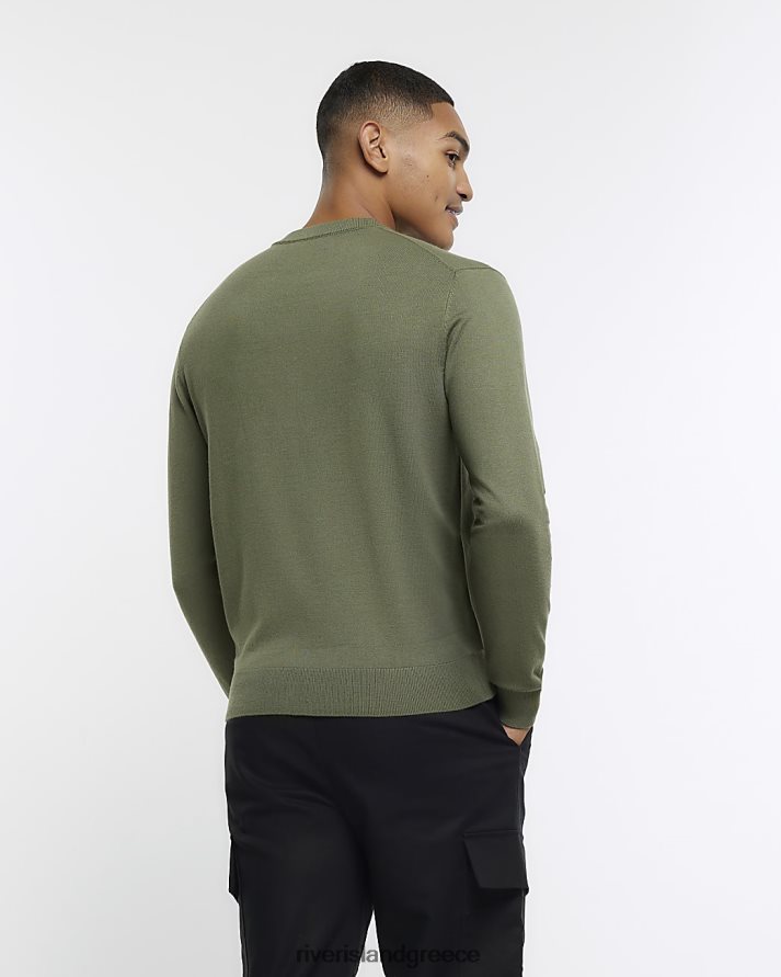 River Island ενδύματα πράσινος άνδρες βραχυκυκλωτήρα πληρώματος λεπτής εφαρμογής B6N8X2592