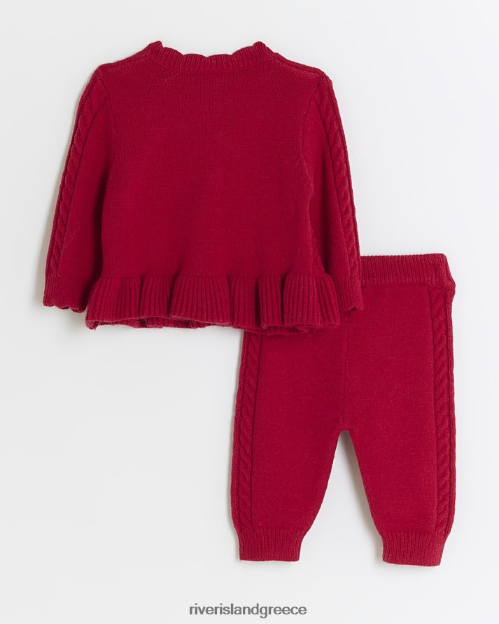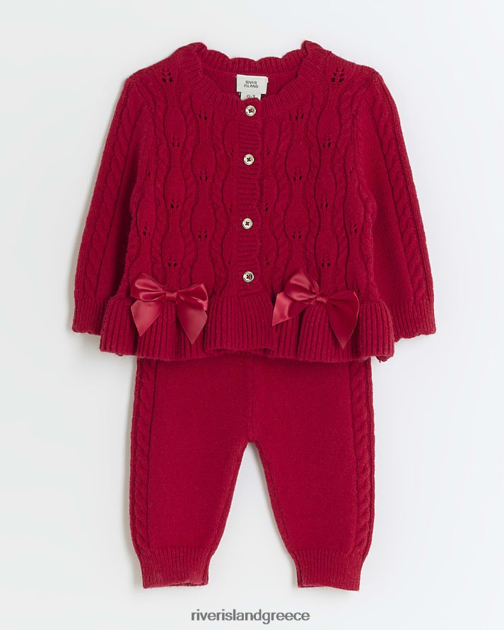 River Island ενδύματα το κόκκινο κορίτσια Σετ ζακέτα πλεκτή καλωδίου bg B6N8X3535