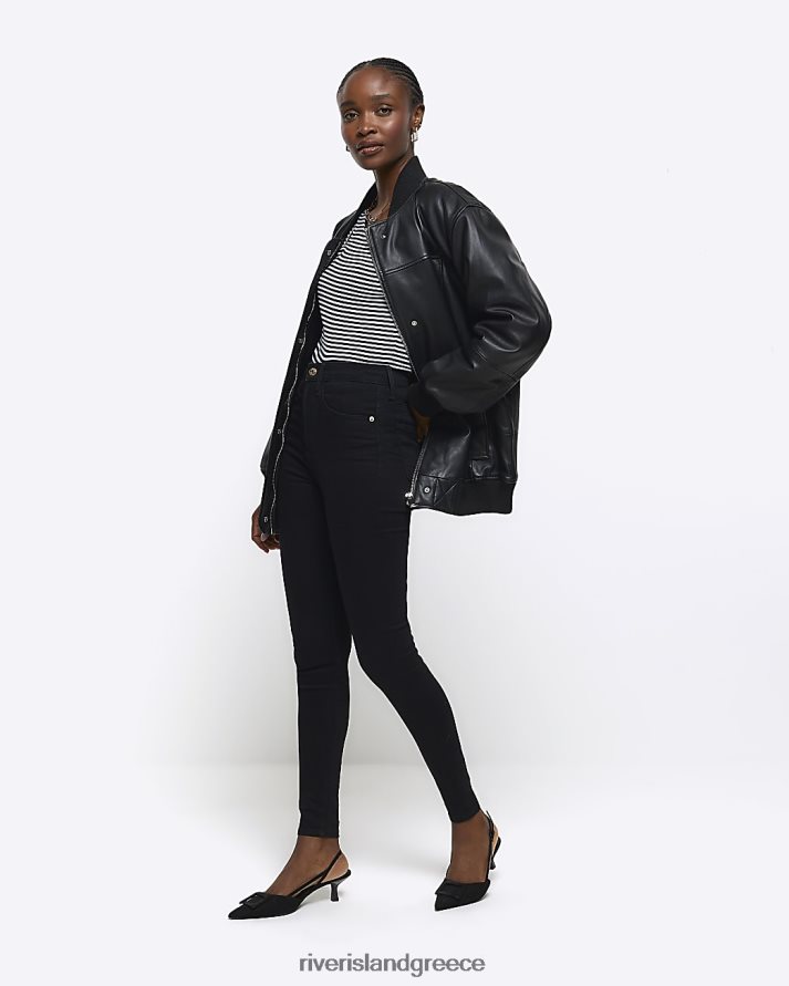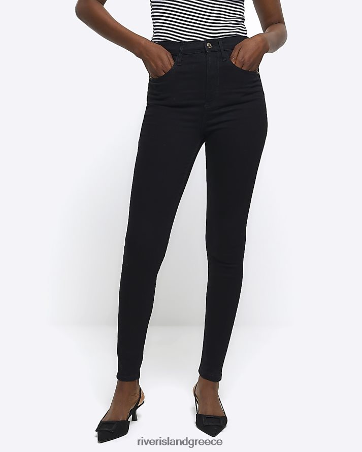 River Island ενδύματα μαύρος γυναίκες ψηλό ανάγλυφο στενό τζιν B6N8X4022