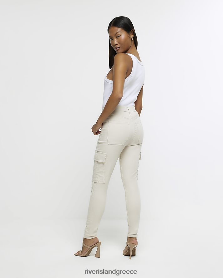 River Island ενδύματα μπεζ γυναίκες μικροκαμωμένο ψηλόμεσο skinny cargo τζιν B6N8X5279