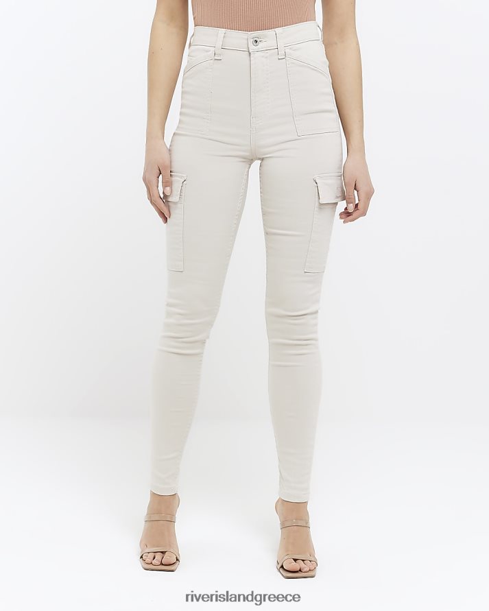 River Island ενδύματα μπεζ γυναίκες ψηλόμεσο skinny cargo τζιν B6N8X4681