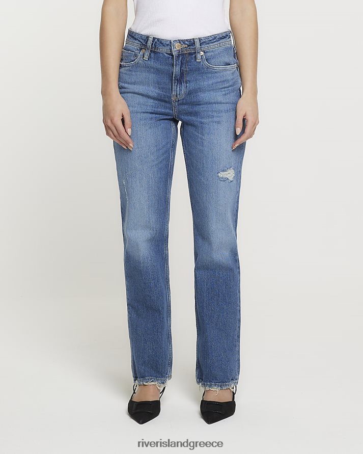 River Island ενδύματα μπλε γυναίκες μικροκαμωμένο μεσαίο τζιν ίσιο πόδι B6N8X5294
