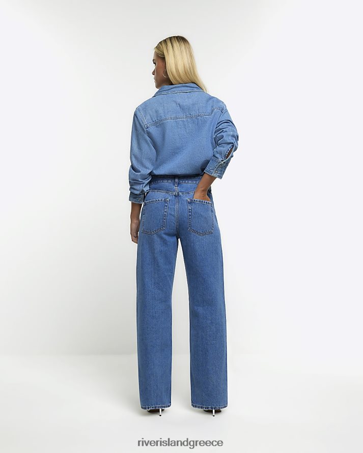 River Island ενδύματα μπλε γυναίκες μικροκαμωμένο ψηλόμεσο ίσιο τζιν B6N8X2271