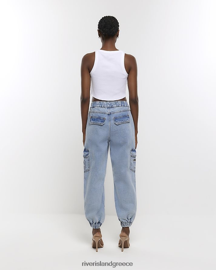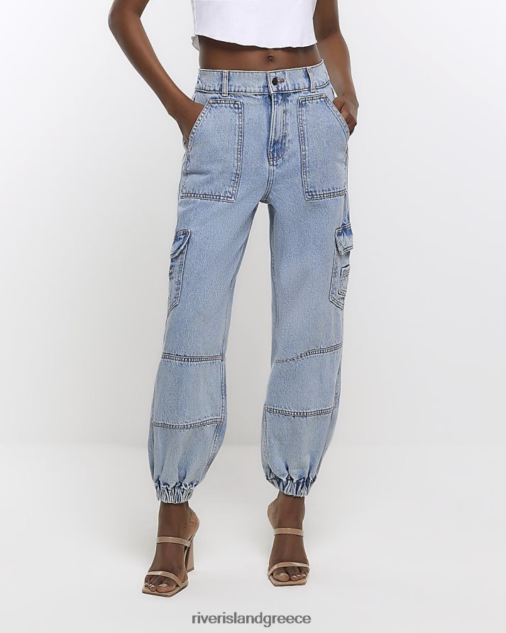 River Island ενδύματα μπλε γυναίκες τζιν cargo με μανσέτες B6N8X921