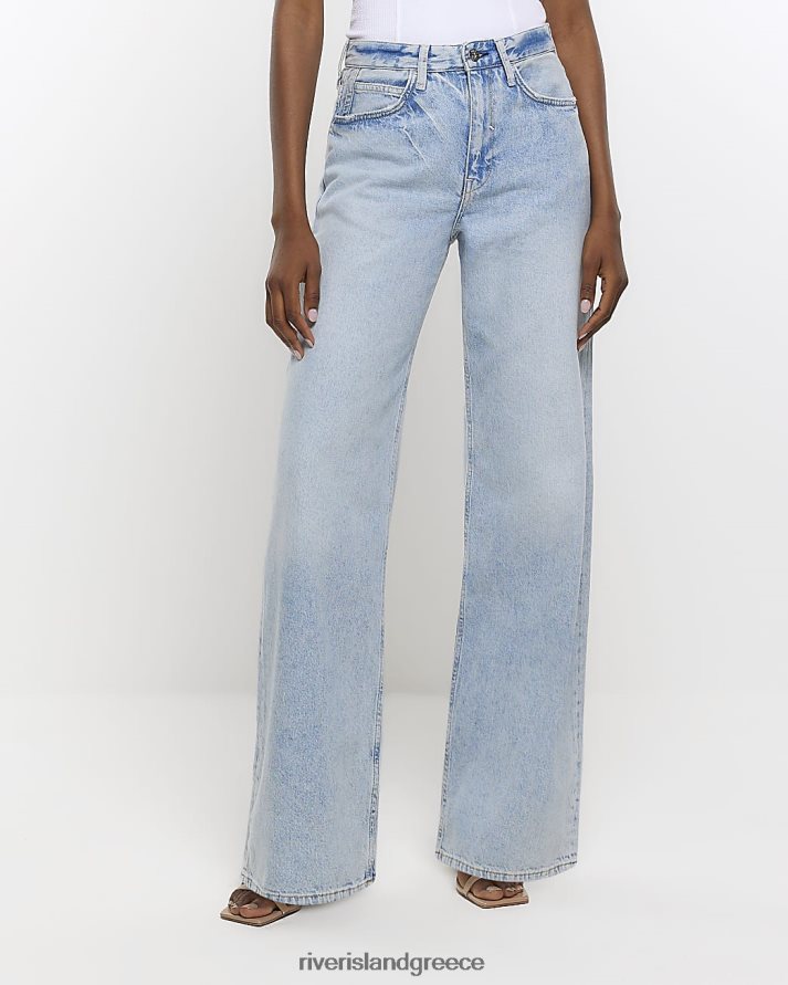 River Island ενδύματα μπλε γυναίκες ψηλόμεσο φαρδύ τζιν B6N8X1264