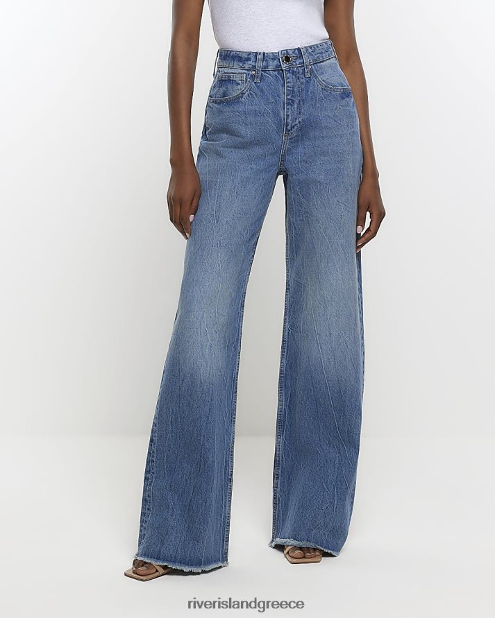 River Island ενδύματα μπλε γυναίκες ψηλόμεσο φαρδύ τζιν B6N8X4354