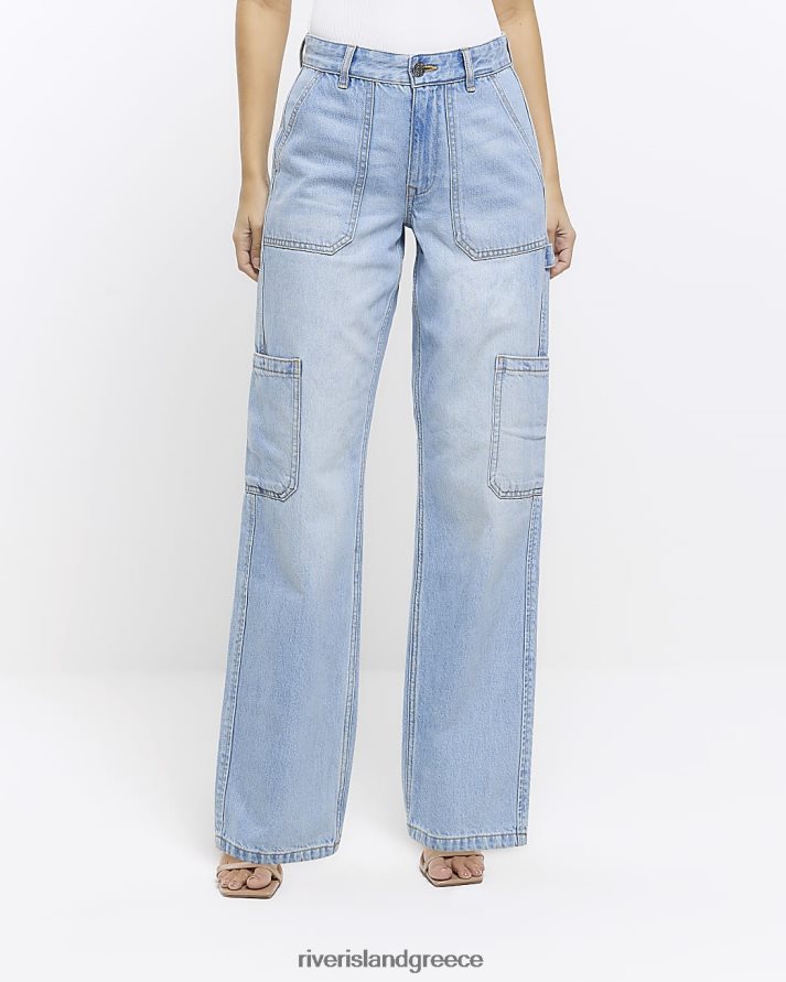 River Island ενδύματα μπλε γυναίκες ψηλόμεσο φαρδύ τζιν cargo B6N8X4697