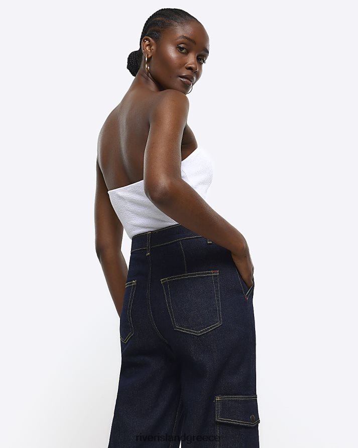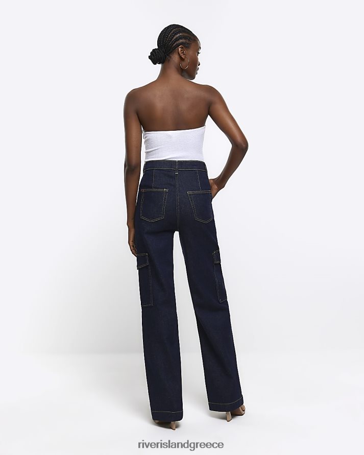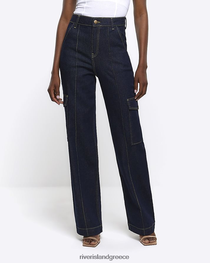 River Island ενδύματα μπλε γυναίκες ψηλόμεσο χαλαρό ίσιο cargo τζιν B6N8X4440