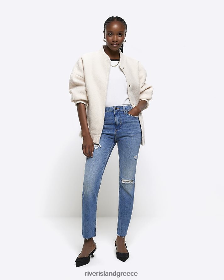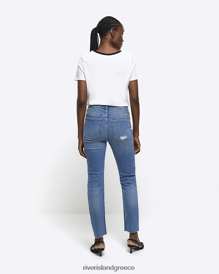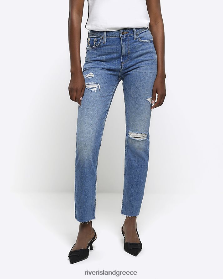 River Island ενδύματα μπλε γυναίκες ψηλόμεσο slim fit σκισμένο τζιν B6N8X4059