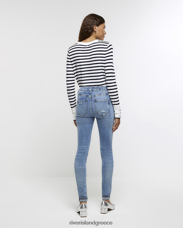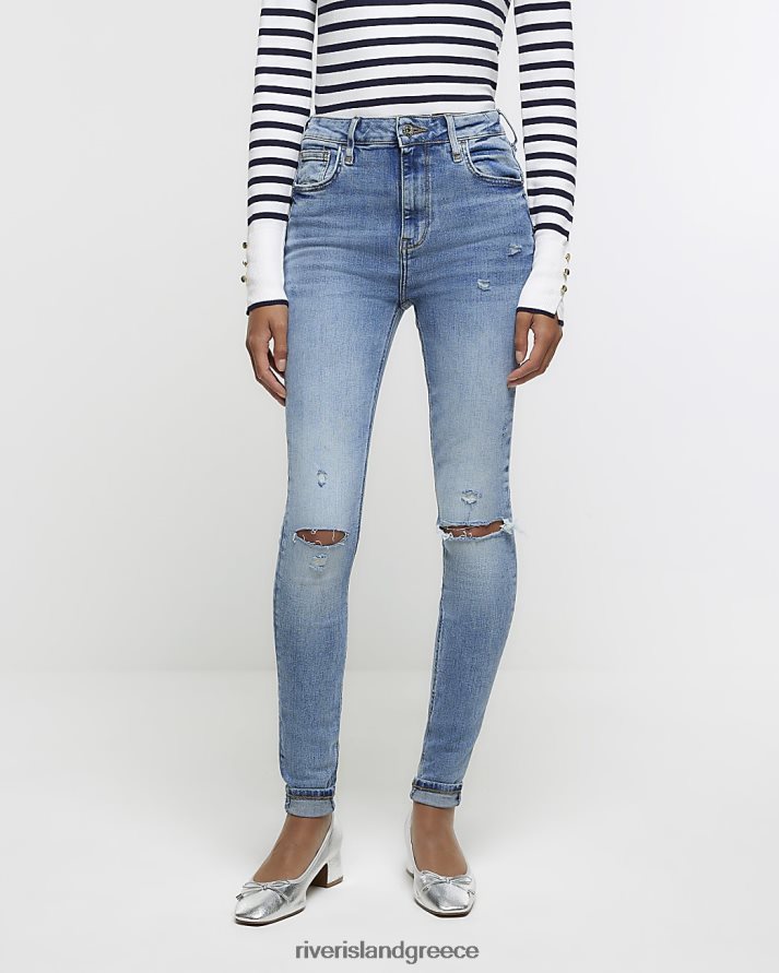 River Island ενδύματα μπλε γυναίκες ψηλός αλήτης γλυπτό σκισμένο superskinny τζιν B6N8X4141