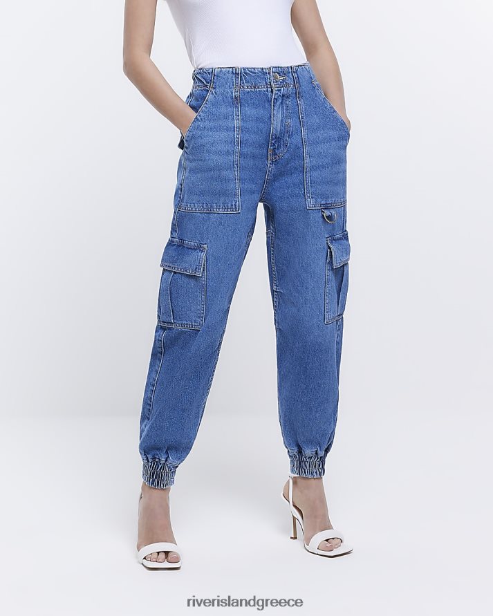 River Island ενδύματα μπλε γυναίκες petite ψηλόμεσο cargo τζιν B6N8X5292