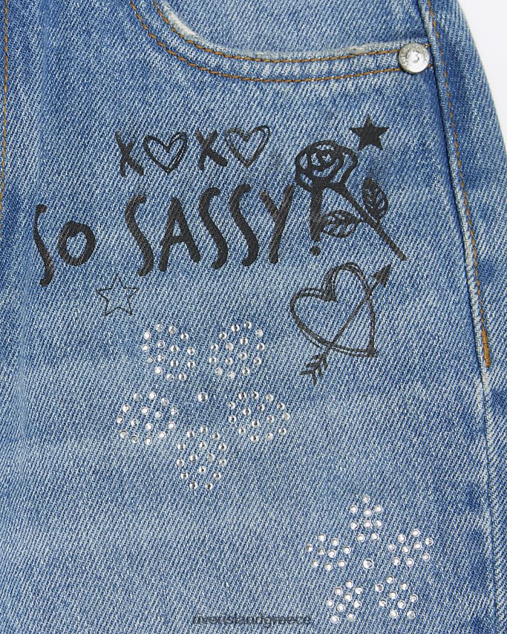 River Island ενδύματα μπλε κορίτσια g γκράφιτι στολισμένο μαμά τζιν B6N8X6224