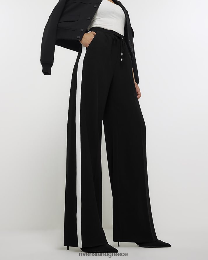 River Island ενδύματα μαύρος γυναίκες πλάγια λωρίδα φαρδιά πόδι joggers B6N8X946