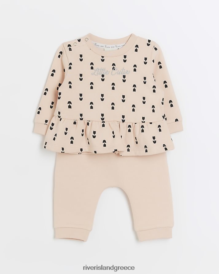 River Island ενδύματα ροζ κορίτσια Σετ bg peplum top και joggers B6N8X3537