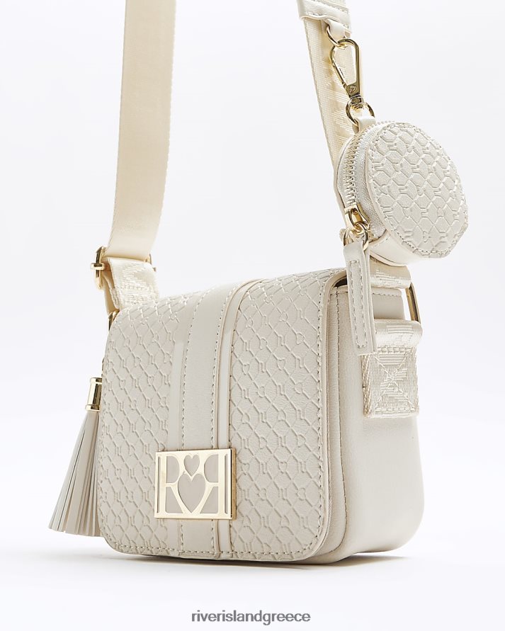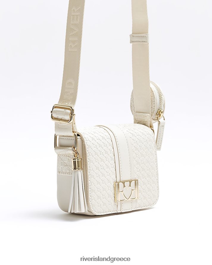 River Island αξεσουάρ κρέμα κορίτσια g ανάγλυφο μονόγραμμα χιαστί τσάντα B6N8X6139