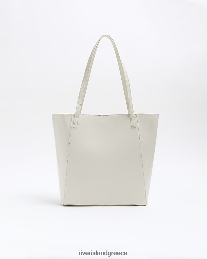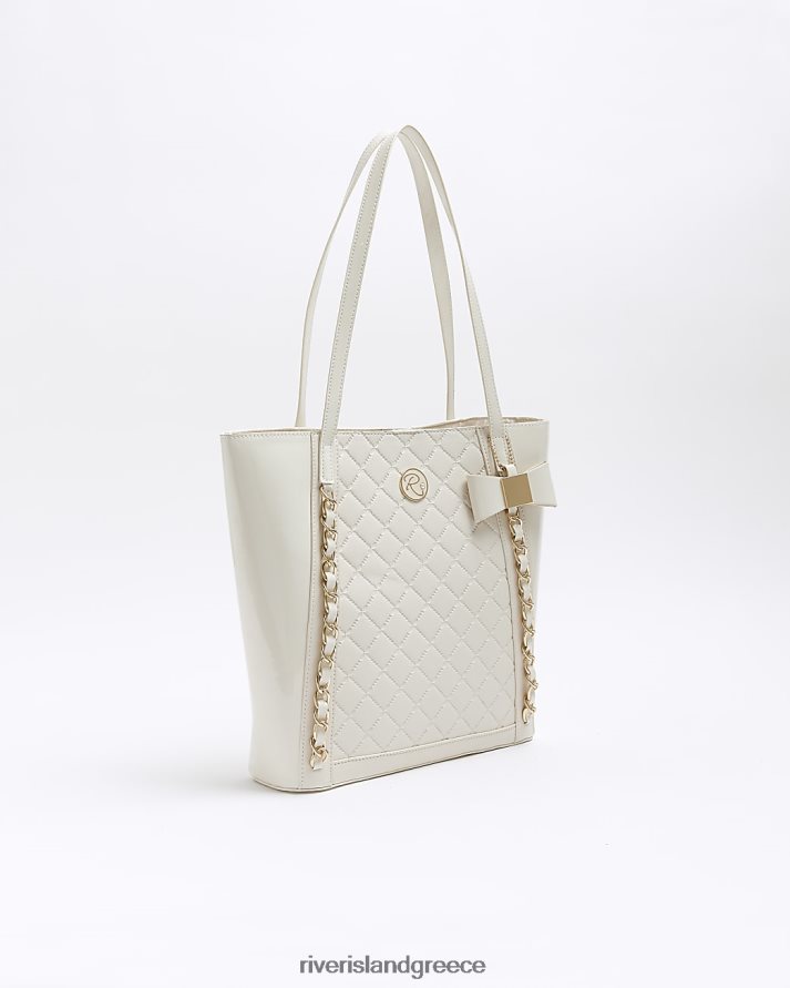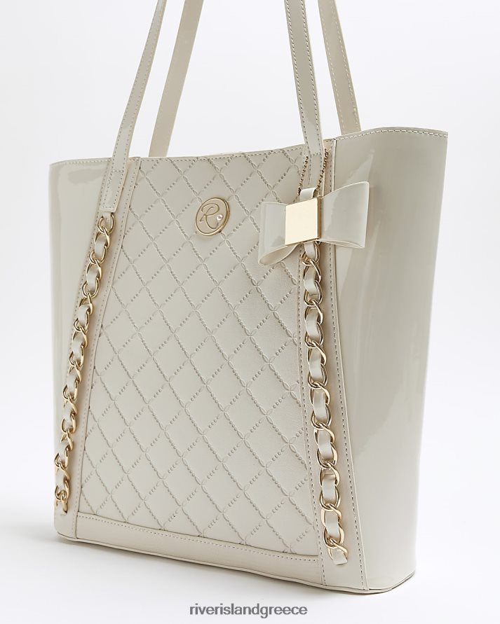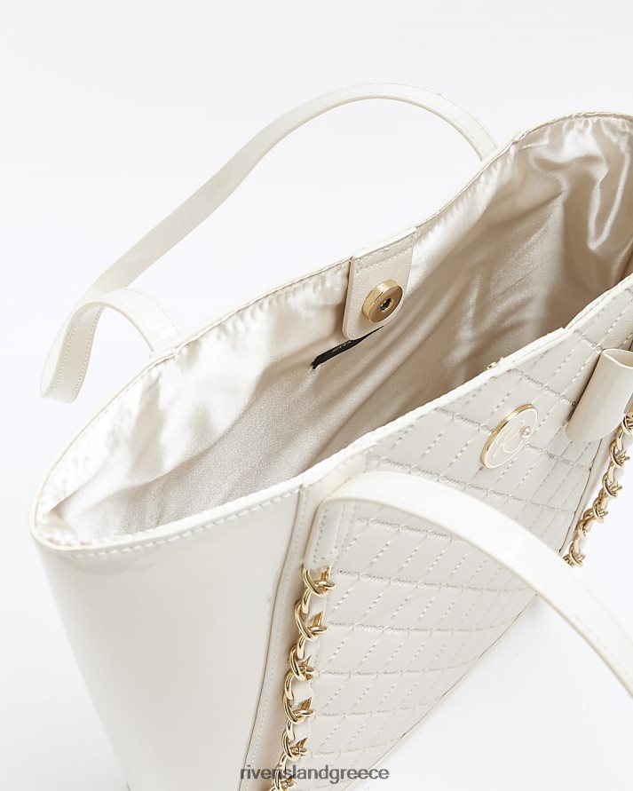 River Island αξεσουάρ κρέμα κορίτσια g καπιτονέ τσάντα shopper με λεπτομέρεια αλυσίδας B6N8X6309