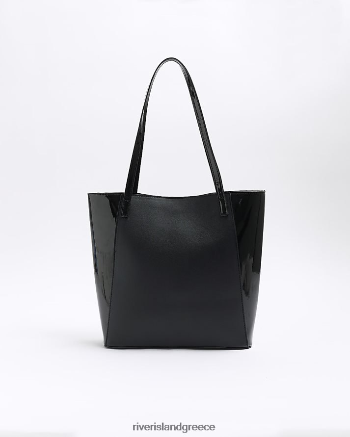 River Island αξεσουάρ μαύρος κορίτσια g καπιτονέ τσάντα shopper με λεπτομέρεια αλυσίδας B6N8X6280