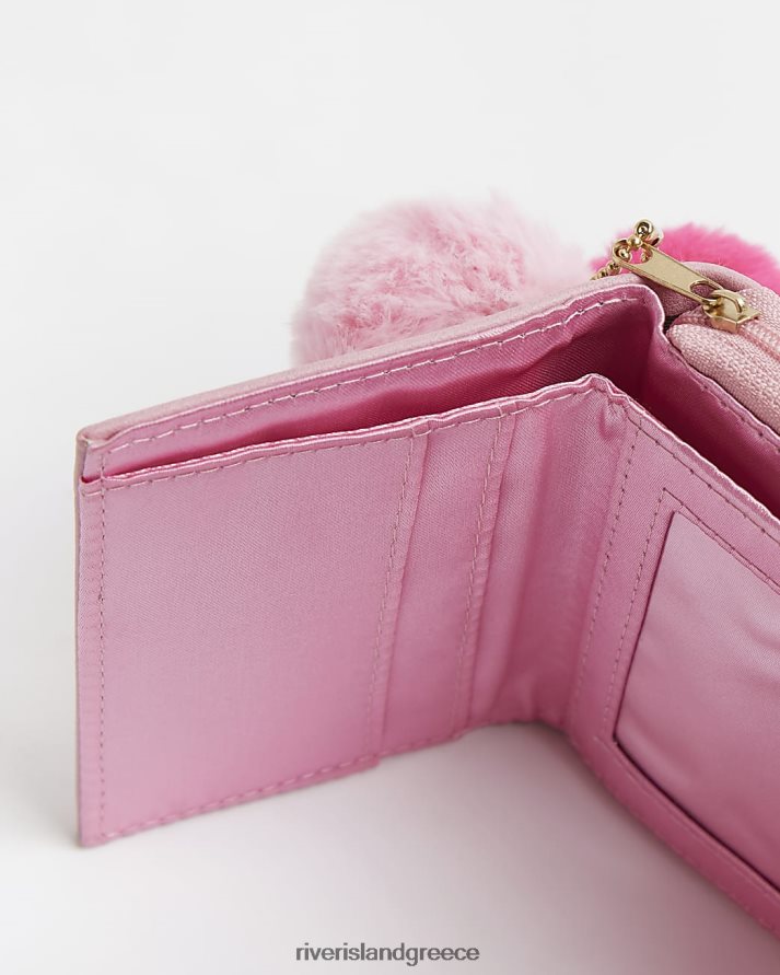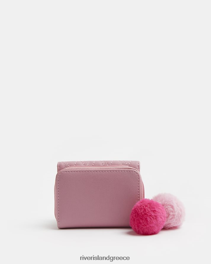 River Island αξεσουάρ ροζ κορίτσια g καπιτονέ πομ πομ τσαντάκι B6N8X6382