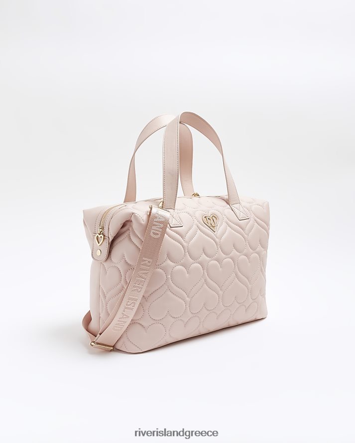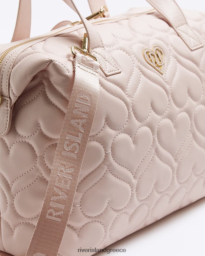 River Island αξεσουάρ ροζ κορίτσια g καρδιά καπιτονέ τσάντα holdall B6N8X6179