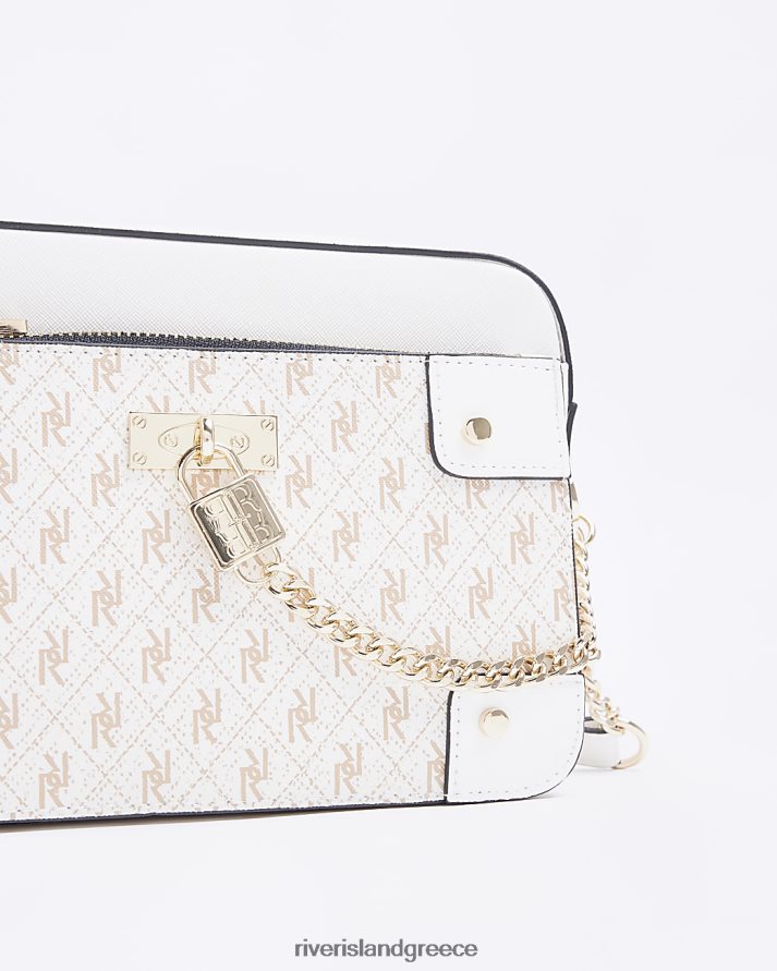 River Island αξεσουάρ άσπρο γυναίκες Τσάντα χιαστί με λουκέτο μονόγραμμα B6N8X1932