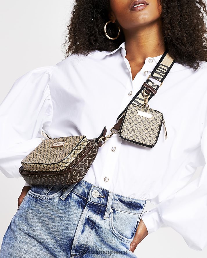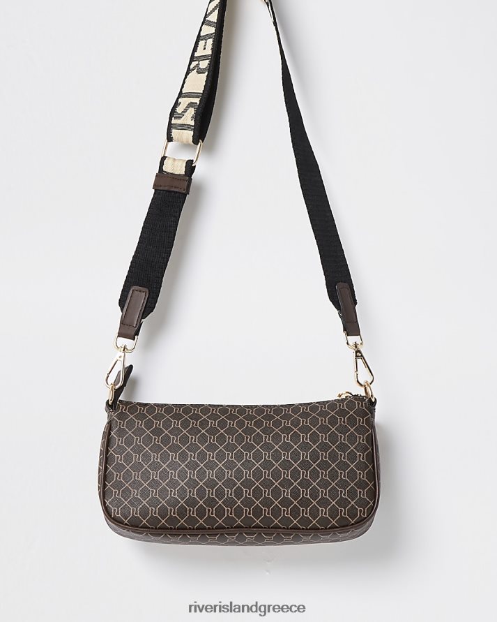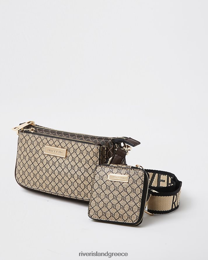 River Island αξεσουάρ καφέ γυναίκες μονόγραμμα χιαστί τσάντα B6N8X480