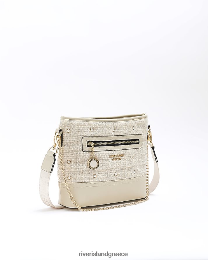 River Island αξεσουάρ κρέμα γυναίκες τσάντα χιαστί με λεπτομέρεια πέρλες B6N8X1250