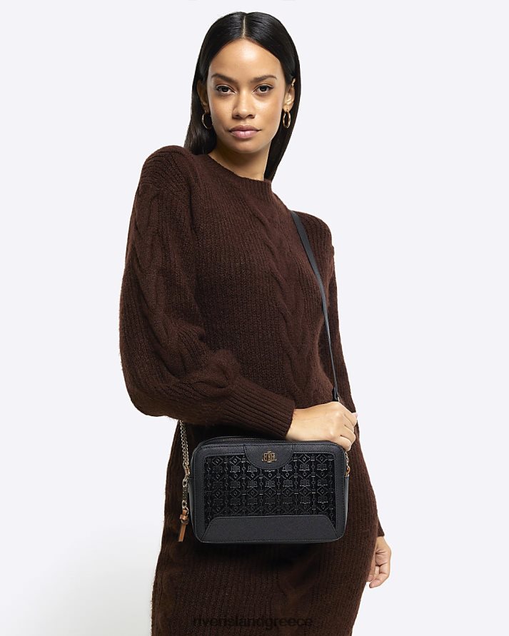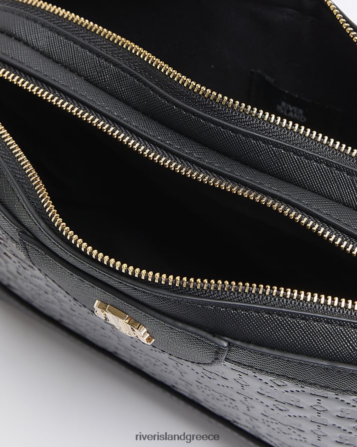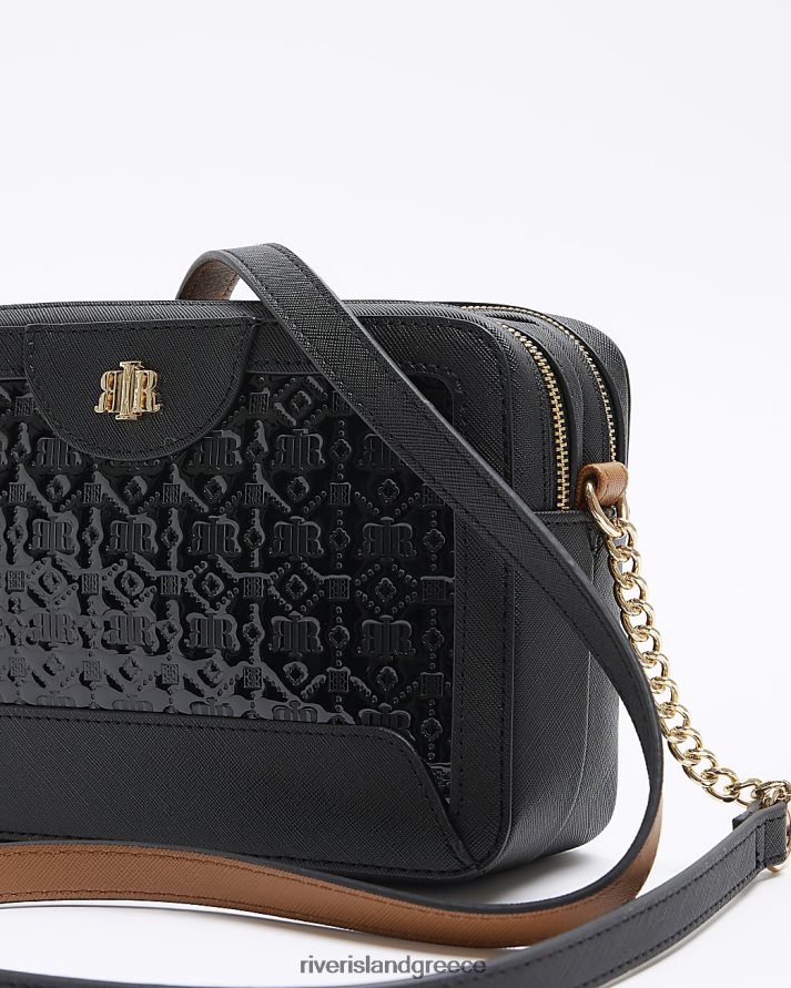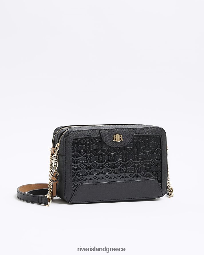 River Island αξεσουάρ μαύρος γυναίκες ανάγλυφο ri boxy χιαστί τσάντα B6N8X3766
