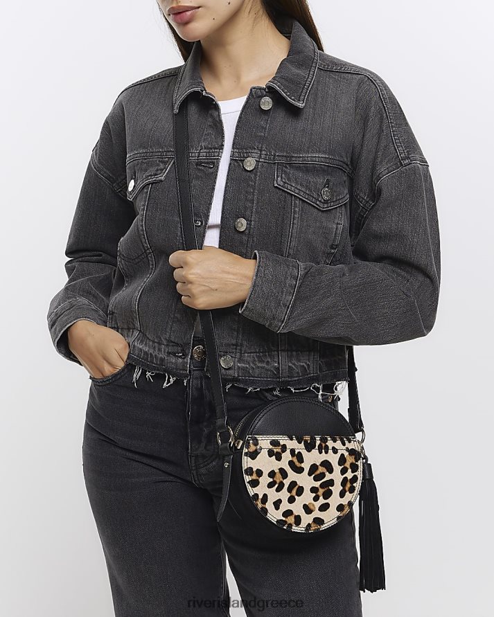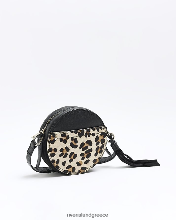 River Island αξεσουάρ μαύρος γυναίκες δερμάτινη τσάντα χιαστί με στάμπα λεοπάρ B6N8X4636