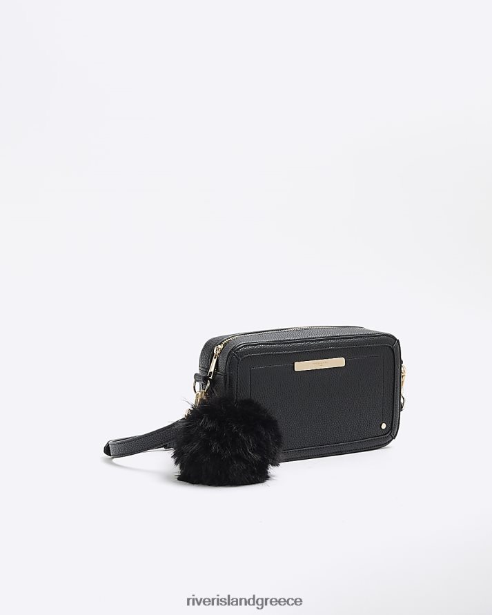 River Island αξεσουάρ μαύρος γυναίκες Τσάντα χιαστί από ψεύτικο δέρμα πομ πομ B6N8X838